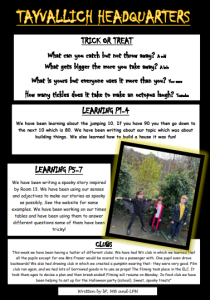 We have had a spooky week here at Tayvallich Primary School, read all about it in this week’s Tayvallich Headquarters.